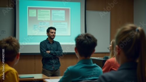 classroom, presentation, lecture, speaker, student, audience, seminar, education, learning, university, college, school, training, conference, business, professional, meeting, group, people, man, woman, person, talking, listening, attentive, engaged, serious, focused, information, datum, graph, chart, projector, whiteboard, desk, table, chair, room, interior, indoor, bright, light, daytime