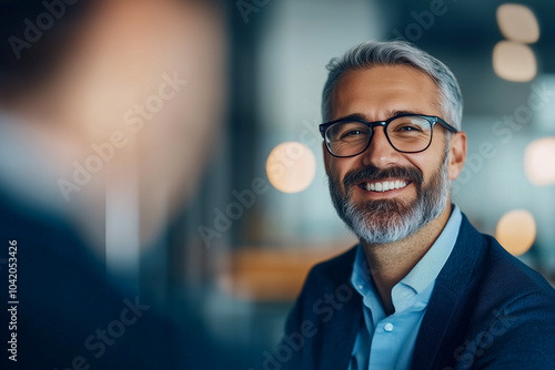man, wearing, goggles, smiling, looking, camera, blue, white, adult, jacket, shirt, person, portrait, business, male, happy, businessman, mature, caucasian, cheerful, lifestyle, modern, senior, attractive, photogenic, happiness, success, confidence, guy, indoor, relaxed, manager, face, eyeglass, home, office, aged, grey, old, 1