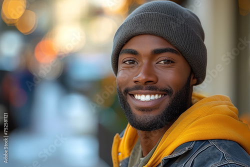 A man with a contagious smile engaging in volunteer work, making a positive impact on the community. Concept of altruistic joy. Generative Ai.