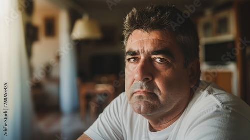 portrait, man, eye, short, room, expression, beard, white, face, depressed, hair, health, nose, stress, upset, sad, dark, blurred, shirt, mad, moustache, worried, sitting, unhappy, background, wrinkle, serious, lighting, forehead, mouth, lit, eyebrow, chin, indoor, photograph, area, dining, dimly, kitchen