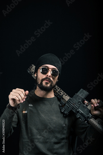 dangerous, danger, soldier, warrior, weapon, handgun, rifle, beard, lifestyle, man, courage, rage, calmness, emotion, person, portrait, 1, hero, war, apocalypse, comic, goggles, style, black, dark, young, hat, fashion, man, face, photogenic, gun, people, guy, gangster, jacket, criminal, mafia, leather, cool, model, bald, expression, crime, white