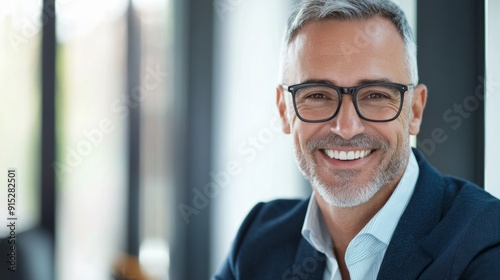a man with glasses smiling at the camera