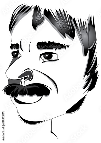 man, moustache, vector, illustration, hair, white, portrait, male, smiling, face, black, adult, vignetting, coiffure, moustache, isolated, art, profile, smile, vintage, retro, head