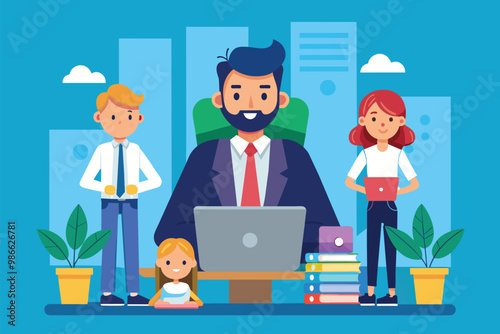 boss, supervising, employee, teamwork, office, workspace, modern, manager, computer, meeting, productivity, collaboration, staff, workday, illustration, children, plant, technology, tablet, laptop, document, casual attire, business, lifestyle, sharpened, engagement, professional, workplace, communication, career, multitask, creative, working environment, cheerful, leadership, organisation, support, monitoring, desk, role model