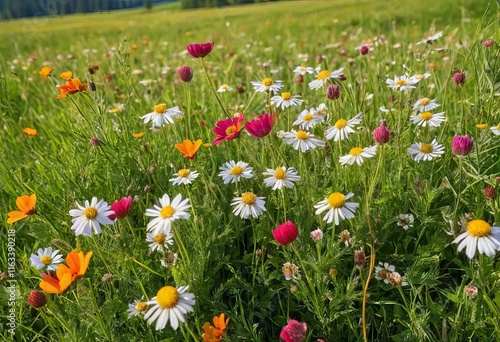 wildflower, meadow, colorful flowers, blue skies, nature, spring flower, botanical, natural beauty, sunny day, environment, gardening, environmentally friendly, landscape design, travel destination, flora and fauna, scenic view, relaxation, arboretum