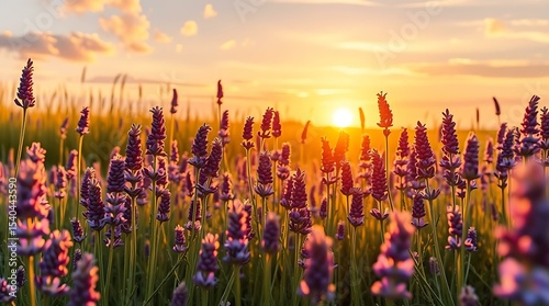 lavandula, meadow, sunset, summer, gold, floral, nature, field, peaceful, bloom, serene, fragrant, scenic, natural, vibrant, flower, harmony, beauty, warmth, stillness, environment, fragrance, colourful, sky, dusk, countryside, calm, purple, season, landscape, sunlight, calmness, radiant, ecosystem, breezy, glow, wild, plant