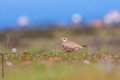 a medium-sized bird resting after migration, Eurasian Dotterel, Charadrius morinellus