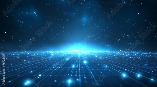 A mesmerizing blue background filled with stars and glowing lines, creating a sense of depth and infinite space.