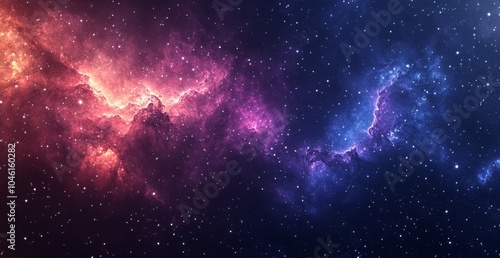 A mesmerizing cosmic landscape with vibrant nebulas in shades of pink and blue, against a backdrop of twinkling stars.