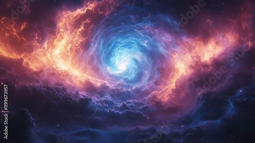 A mesmerizing cosmic swirl of vibrant colors, showcasing swirling clouds of gas and stars in a deep space setting.