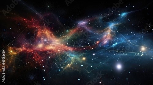 A mesmerizing cosmic tapestry of swirling nebulae and shimmering stars, connected by ethereal lines of light.