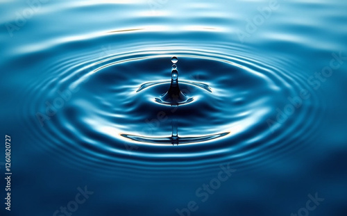 A mesmerizing scene of deep blue water with perfect, concentric ripples gracefully expanding outward from a central vortex