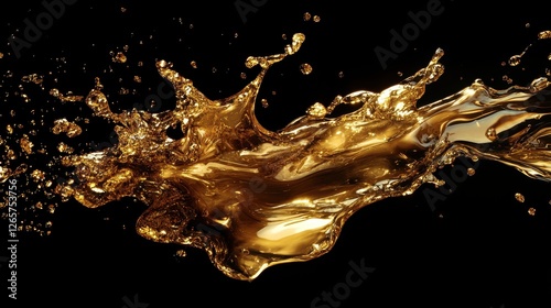 A mesmerizing splash of golden liquid captured in mid-air, showcasing dynamic movement and vibrant color against a dark background.