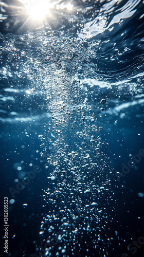 A mesmerizing view from beneath the ocean surface, capturing the interplay of light filtering through water. The low-angle perspective evokes a sense of depth, mystery, and vastness