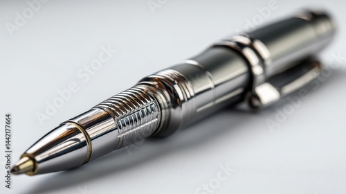 metal, pen, white, isolated, background, sleek, professional, lighting