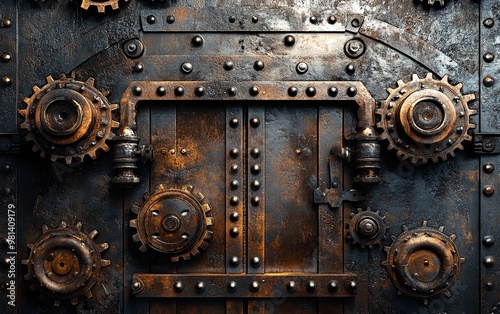 door, gear, metal, rivet, industrial, texture, machinery, hardware, vintage, design, architecture, mechanism, panel, rust, bronze, engineering, craftsmanship, pattern, surface, construction, bolt, element, style, decor, antique, system, workshop, factory, aesthetic, innovation, art, detail, structure, lock, opening, closure, background, finish, work, tool, technology, fabrication, retro, artifice, creation, assembly