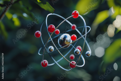 metallic, sphere, red, silver, ball, green, leaf, atom, science, neutron, representation, proton, nuclear, nucleus, physics, chemistry, electron, energy, particle, blue, technology, structure, molecular, element, molecular, abstract, symbol, power, illustration, connection, model, circle, microscopic, biology, core, research, education, concept, chemical, scientific, orbit, three-dimensional, background, icon, macro, shape, glow, digital, design
