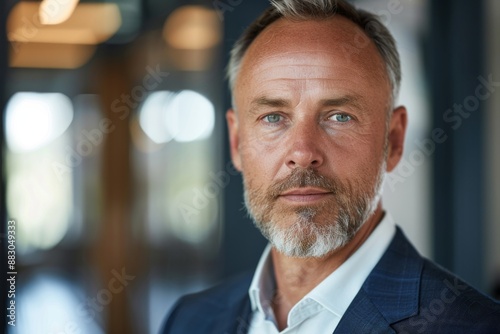 businessman, portrait, confident, middle-aged, man, office, modern, white, shirt, blue, blazer, beard, professional, corporate, success, leadership, executive, head shot, serious, eye, looking, camera, business, finance, entrepreneur, career, management, men at work, employee, job, work, workplace, businessperson, goal, ambition, achievement, team, strategy, growth, vision