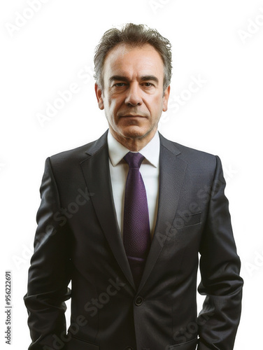 A middle-aged corporate professional in a suit, exuding confidence and authority, perfect for business-related visuals and branding. On Transparent Background