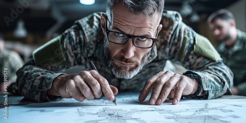 A military general devising a strategic plan to avoid escalation, illustrating conflict management in a military context