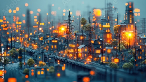 city, night, light, building, street light, urban, miniature, model, city landscape, architecture, futuristic, modern, town, downtown, dusk, evening, glow, illuminated, skyline, street, lamp, lamp-post, building, street light, light, landscape
