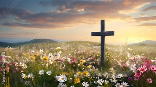 easter, cross, christian, miniature, celebration, spring, flower, garden, floral, decoration, garden design, illustration, background, scene, poster, wallpaper, banner, copy space, closeup, good friday, religious, jesus christ, faith, grace, prayer, godliness, biblical, holy, sacred, doctrine, piety, gospel