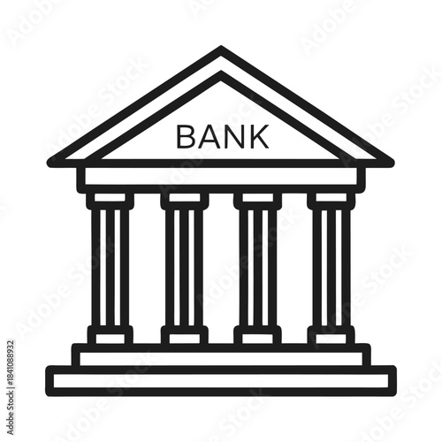 bank, building, icon, illustration, finance, money, financial, institution, architecture, classical, column, pillar, pediment, government, business, loan, savings, investment, currency, economy, white background, outline, simple, minimalist, vector, graphic, design, symbol, corporate, commerce