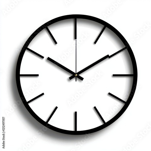 A minimalist black wall clock displaying time with simple hour and minute hands on a white background.