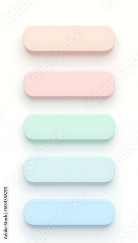A minimalist collection of flat buttons in soft pastel tones showing various microinteraction states — hover, pressed, disabled — laid out on a white card background.