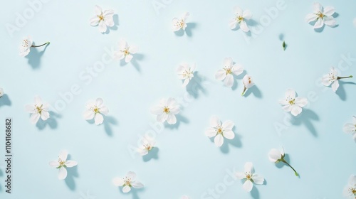 A minimalist composition of delicate cherry blossoms on a clear sky background, aerial shot, Naturalistic style