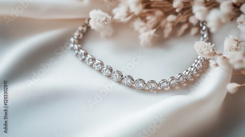 A minimalist diamond bracelet with a single row of stones against a clean white backdrop