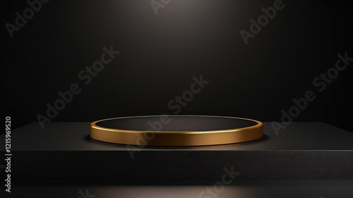 A minimalist display platform with a golden rim, set against a dark background.
