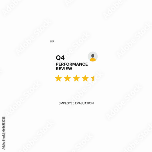 A minimalist graphic presenting a Q4 performance review with employee evaluation details.