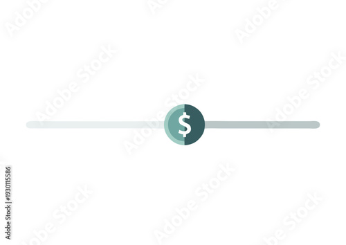A minimalist illustration of a dollar sign centered within a teal circle on a horizontal line