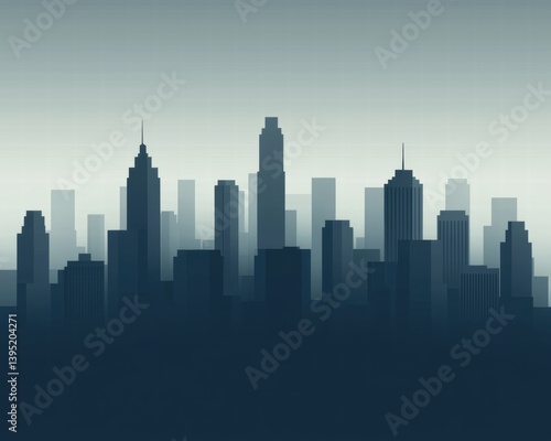 A minimalist silhouette of a city skyline, showcasing various skyscrapers in shades of blue and gray against a gradient background.