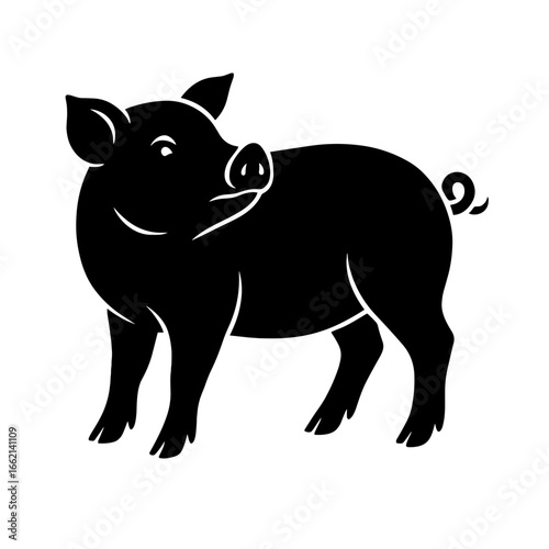 A minimalist silhouette of a domestic pig showcases a simple, clean aesthetic. Featuring a full body view, highlighting the endearing and charming essence of this farm animal.