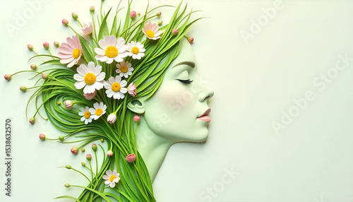 A minimalist sketch of a woman's face beautifully intertwined with flowers, stems, and leaves, all illustrated in elegant black lines on a white background.