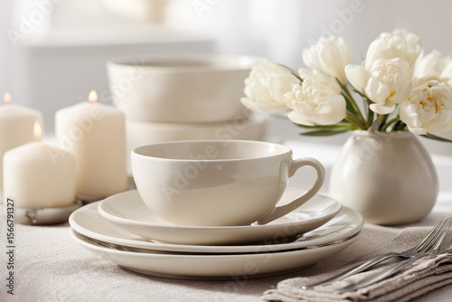 minimalist, table, setting, warm, pastel, tone, focusing, single, dish, illuminated, soft, light, background, clean, serene, atmosphere, dining, life events, arrangement, elegant, tableware, subtile, decorative, element, creating, harmonious, inviting, scene, professional, abstract, colours, empty space, copy space, concept, visual, composition