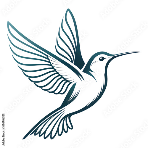 A minimalist teal hummingbird outline with intricate wing patterns, creating a sense of elegance and motion, set against a transparent background