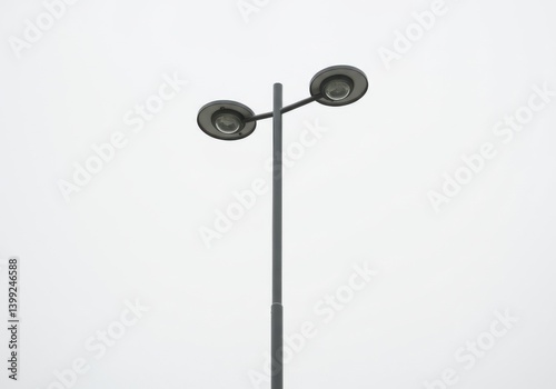 lamp, street, light, pole, sky, white, minimalist, modern, urban, city, grey, tall, electricity, metal, clean, simple, day, round, design