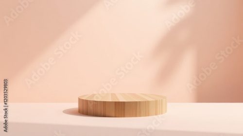 minimal, wooden, display, platform, peach, background, light, shadow, subtile, simple, elegant, clean, modern, product, presentation, showcase, scene, setting, composition, design, aesthetic
