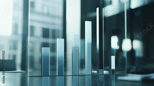 A minimalistic bar chart featuring smooth transitions and slightly transparent bars, arranged to illustrate progression on a clean background.