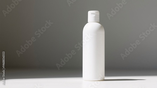 A minimalistic shot of a clean, white bottle against a soft backdrop. The bottle is sleek and modern, emphasizing simplicity and product presentation.