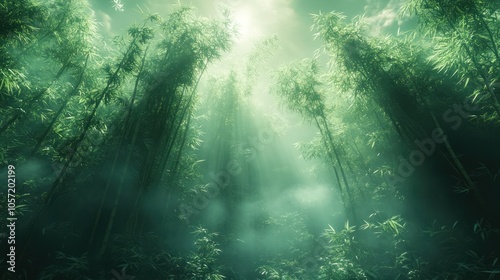 bamboo, forest, green, sunlight, mist, fog, nature, tree, timberland, foliage, canopy, light, ray, morning, peaceful, tranquil, serene, mystical, magical, lush, vibrant, fresh, beauty, growth, life, environment, tropical, jungle, summer, spring, asia, japan, china, outdoors, travel, adventure, photo, wallpaper, background, illustration, digital artwork, artwork, design, graphic, vector, texture