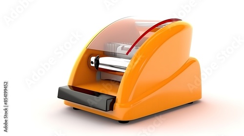 A modern and stylish orange kitchen appliance with a transparent lid. It has a sleek design and would look great in any modern kitchen.