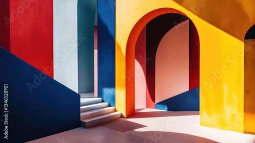 A Modern Architectural Composition Features Bold Colors And Arched Openings