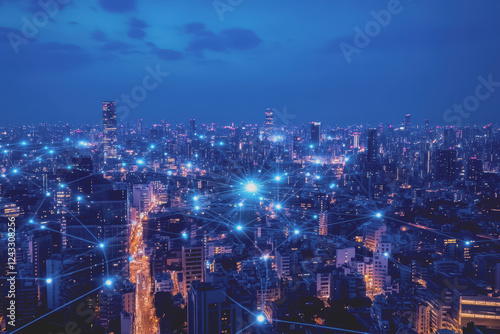 networking, intelligence, idea, no people, skyscraper, futuristic, global, photo, concept, atom, background, datum, connection, cyberspace, horizontal, color image, night, communication, computer, mobile phone, computer graphic, business, technology, modern, abstract, building exterior, city life, symbol, built structure, blue, outdoors, design, wireless technology, city landscape, city, computer network, digital display