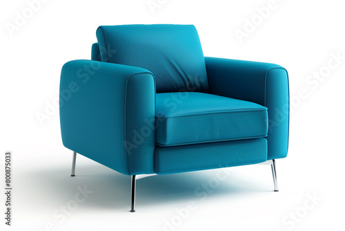 A modern club chair in a vibrant blue color, isolated on a solid white background.