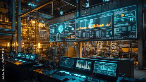 modern, food, production, facility, control, hub, ai, system, oversee, multiple, robotic, performance, real, manufacture, industrial, display, equipment, insight, monitor, interface, information, technical, remote, sensor, process, management, factory, visualisation, operational, assurance, efficiency, dashboard, automation, quality, analytic, datum, integration, technology, machine, coordination