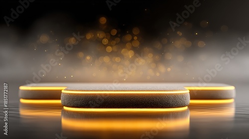 A modern, illuminated display stand with soft edges and a shimmering background, perfect for product showcases, presentations, and promotional materials, Ideal for beauty, tech